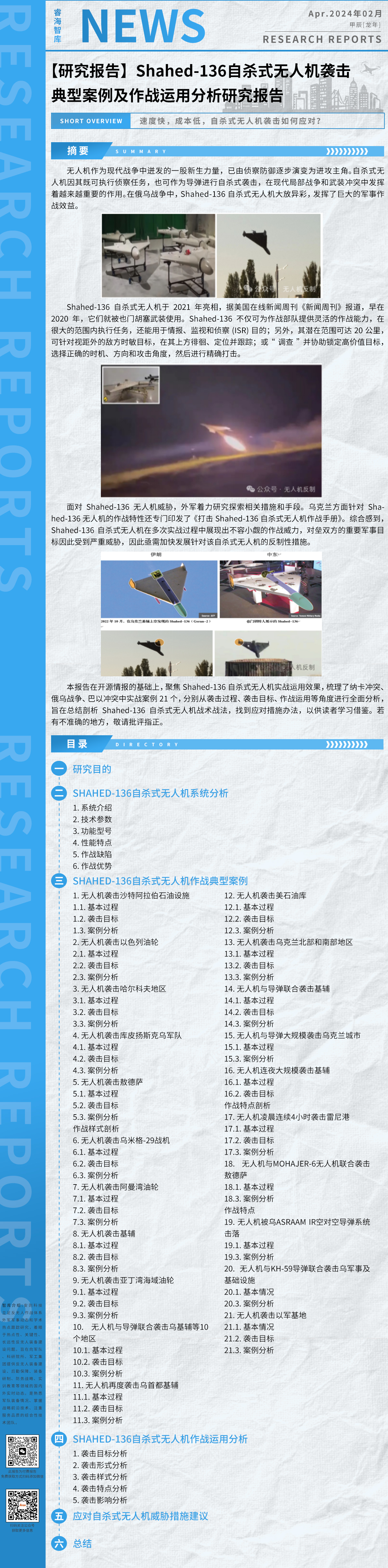 【研究報告】Shahed-136自殺式無人機襲擊典型案例及作戰運用分析研究報告