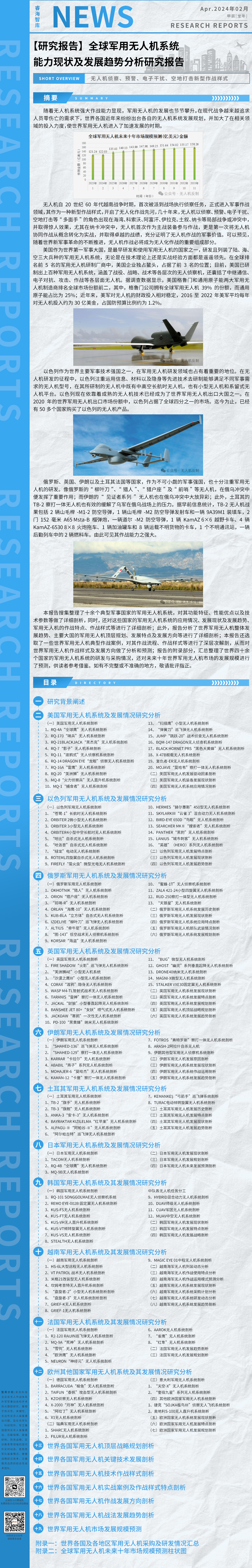 【研究報告】全球軍用無人機系統能力現狀及發展趨勢分析研究報告