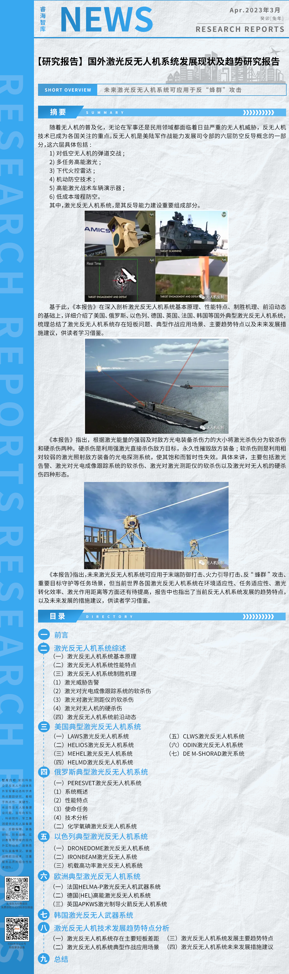 【研究報告】國外激光反無人機系統發展現狀及趨勢研究報告