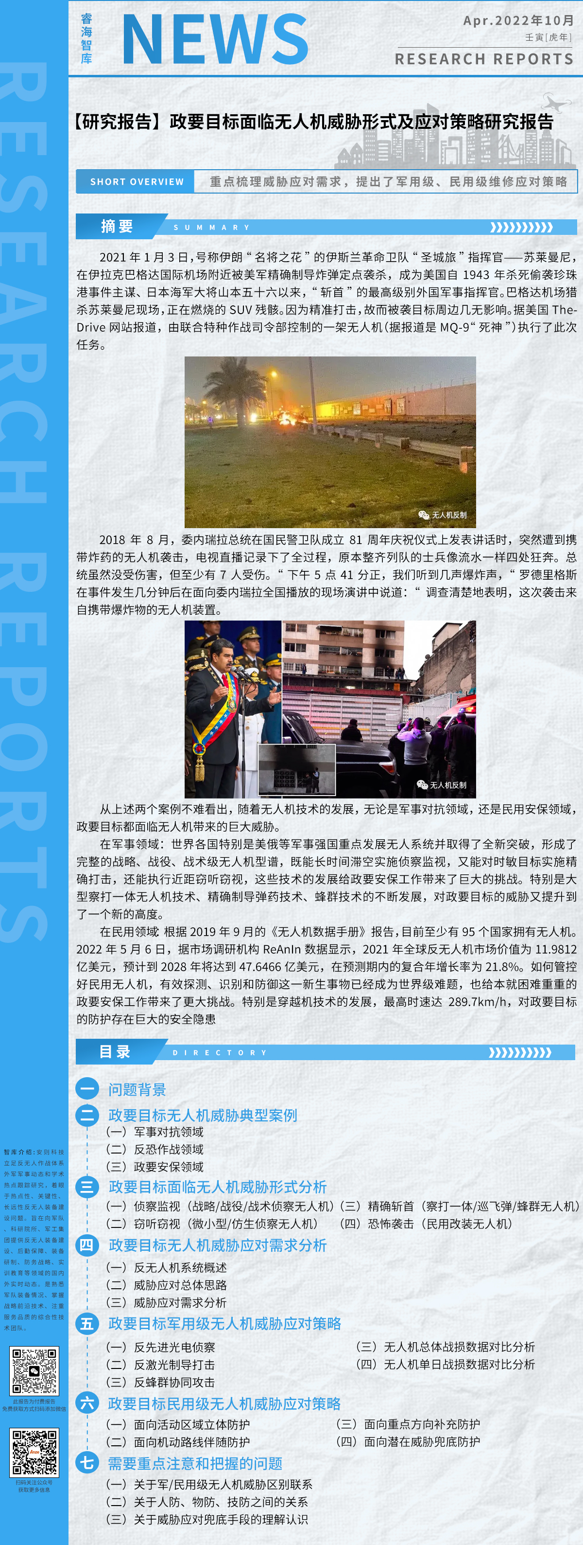 【研究報告】政要目標面臨無人機威脅形式及應對策略研究報告