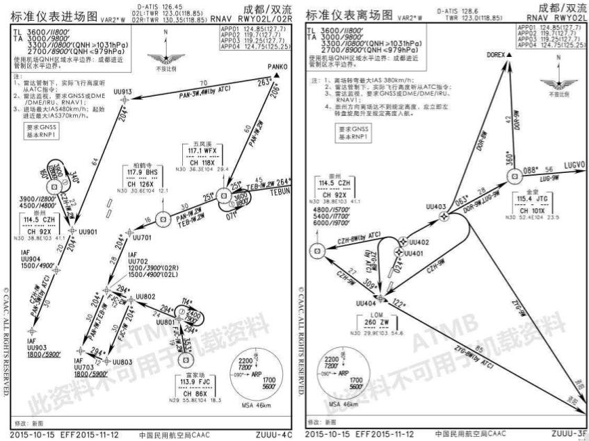 圖 2成都雙流機(jī)場(chǎng)客機(jī)進(jìn)場(chǎng)和離場(chǎng)航路圖