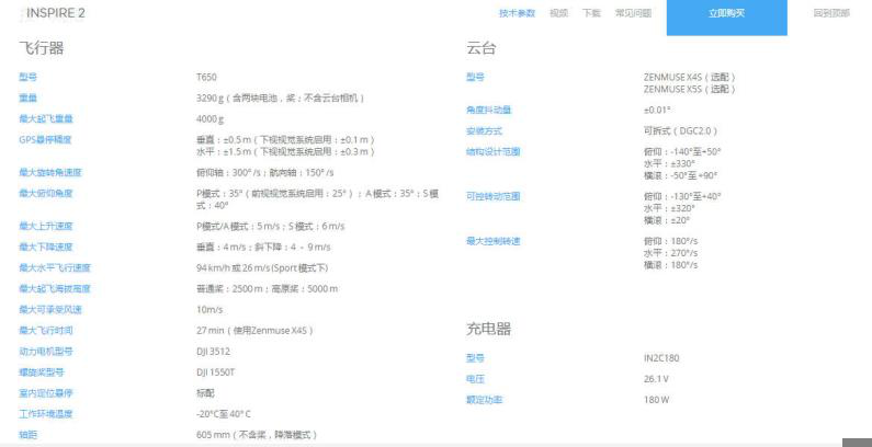 圖 3大疆 INSPIRE 2無(wú)人機(jī)技術(shù)參數(shù)