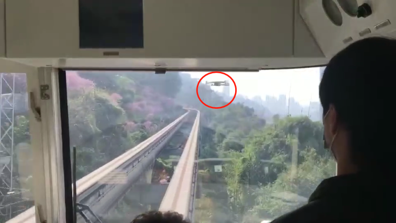 無人機撞上重慶2號線單軌列車致使緊急剎車