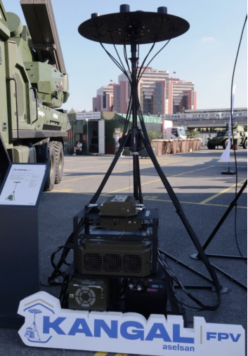 Kangal FPV是一種反應(yīng)式干擾器,可探測FPV使用的上行鏈路和下行鏈路頻率,并對(duì)其進(jìn)行干擾,同時(shí)遵循FPV為避免被干擾而可能使用的任何頻率偏移。Kangal FPV是一種基于軟件、直接數(shù)字合成(DDS)、現(xiàn)場可編程門陣列控制(FPGA)的掃頻干擾系統(tǒng),在使用全向天線(如SAHA展覽會(huì)上可見的天線)時(shí)可實(shí)現(xiàn)360°覆蓋,但也可在特定情況下使用定向天線。它覆蓋的頻譜很廣(Aselsan沒有具體說明),可以干擾用于遙控和視頻傳輸?shù)男盘?hào),以及GPS、伽利略、Glonass和北斗GNSS系統(tǒng)使用的導(dǎo)航信號(hào),還有數(shù)據(jù)鏈路和遙測數(shù)據(jù),所有這些信號(hào)都會(huì)同時(shí)受到干擾。整個(gè)裝置的重量不到25公斤,使用電池可工作一個(gè)多小時(shí),如果與主電源連接,則工作時(shí)間不受限制。Aselsan已進(jìn)入最后測試階段,Kangal FPV將很快投入使用。
